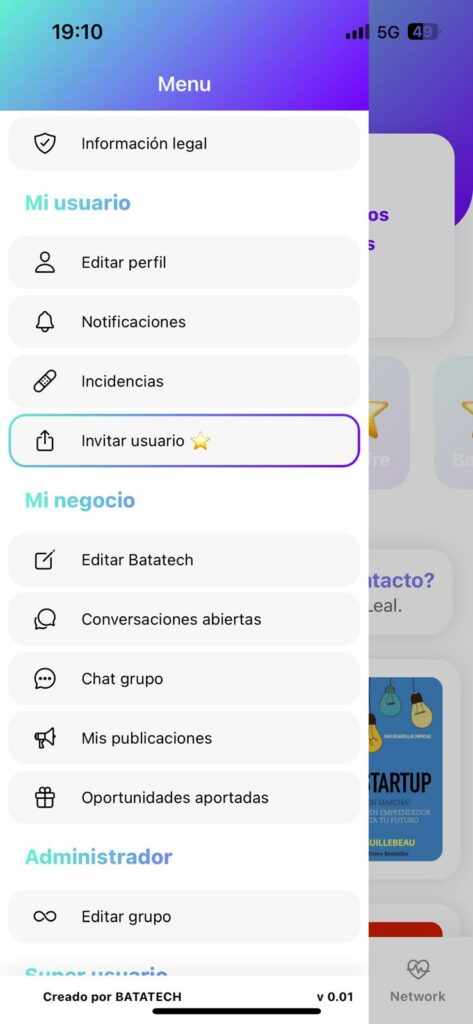 Invitar usuarios: Enviar invitaciones para añadir nuevos miembros al grupo de Givers.
