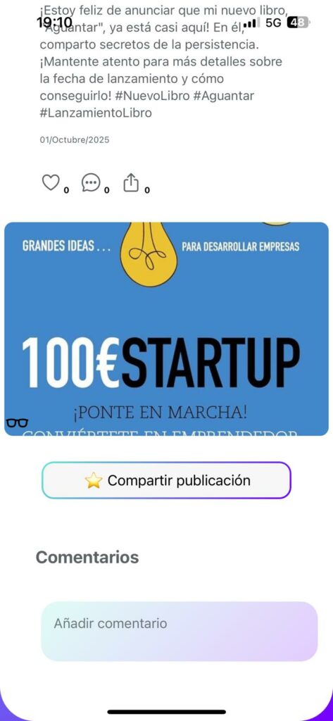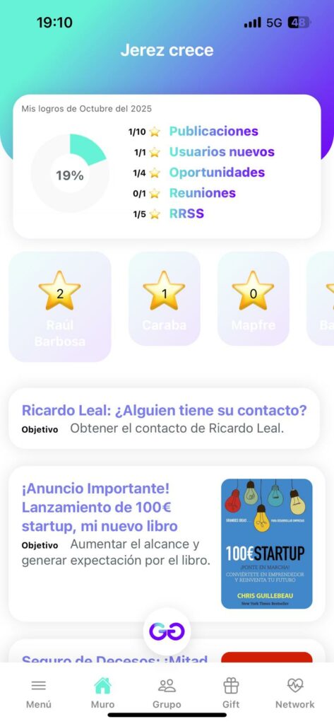 Los miembros del grupo pueden crear publicaciones que se muestran en el muro de la aplicación, visibles para todos los demás integrantes. Este espacio permite expresar de manera inmediata cualquier necesidad u oportunidad, sin esperar a una reunión formal.