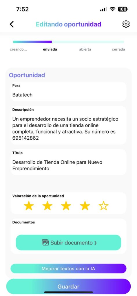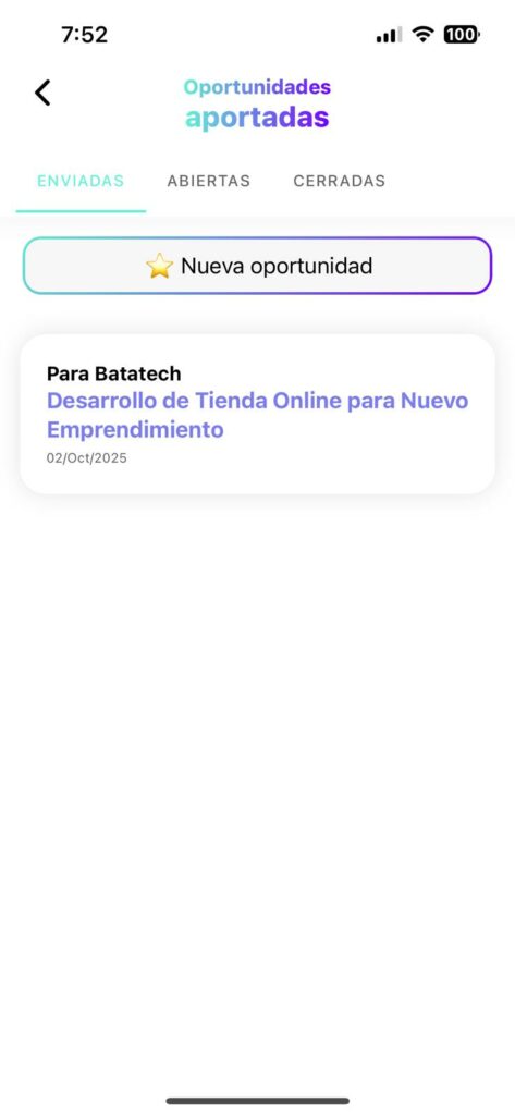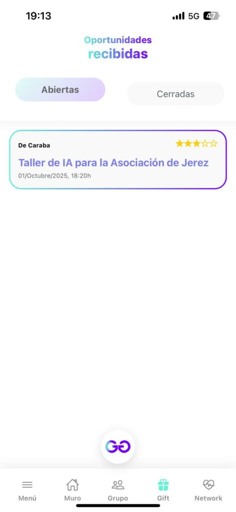 En esta página podrás gestionar todas las oportunidades recibidas por parte de los demás miembros del grupo.