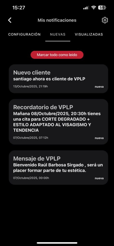 Notificaciones: Configurar y ver notificaciones push en tiempo real.